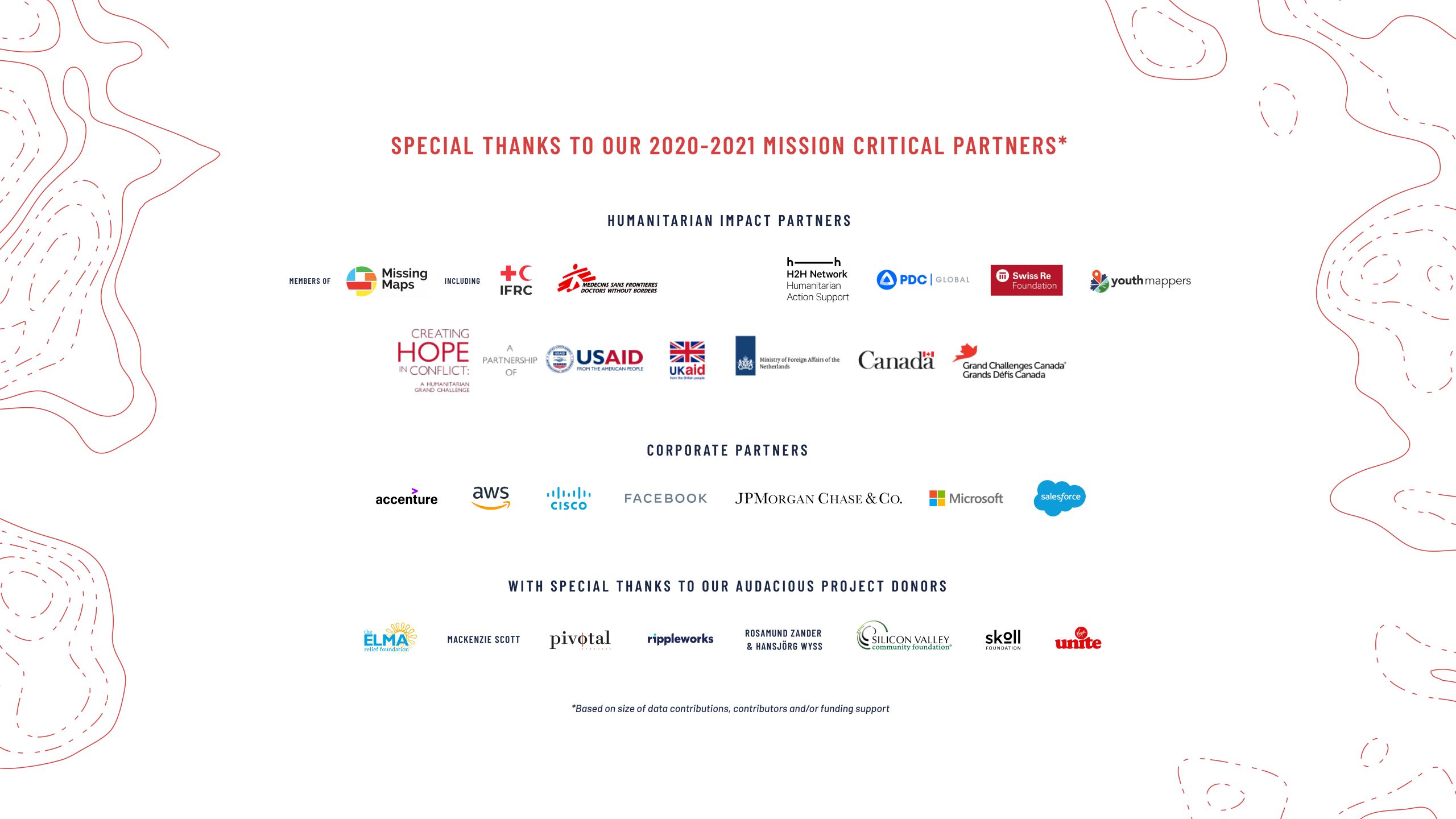 We support a dynamic global community of thousands of dedicated contributors using maps and open data for humanitarian response and the Sustainable Development Goals.